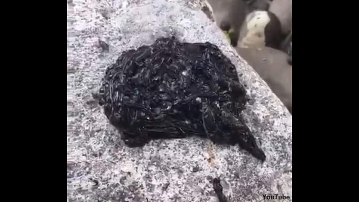 Be that as it may, the video quickly caught fire online, amassing millions of views and being shared by countless people on social media. In the footage, a dark mass that looks somewhat like cooling tar sits on a large rock and, upon closer inspection, can be seen wriggling around in a manner indicating that it is a living creature. Perhaps reading the minds of horrified people watching the video, a person off camera promptly stabs at the blob with a rather menacing looking knife and scrapes away a the oddity presumably in an attempt to figure out what it is.
